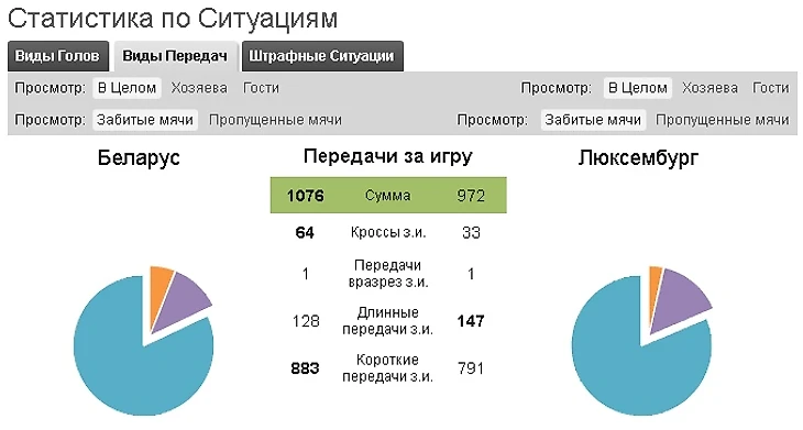 Также хочется обратить внимание на огромный перевес по использованию кроссов. По общему числу передач примерное равенство, а вот именно кроссы в штрафную Белорусы применяли в два раза чаще.