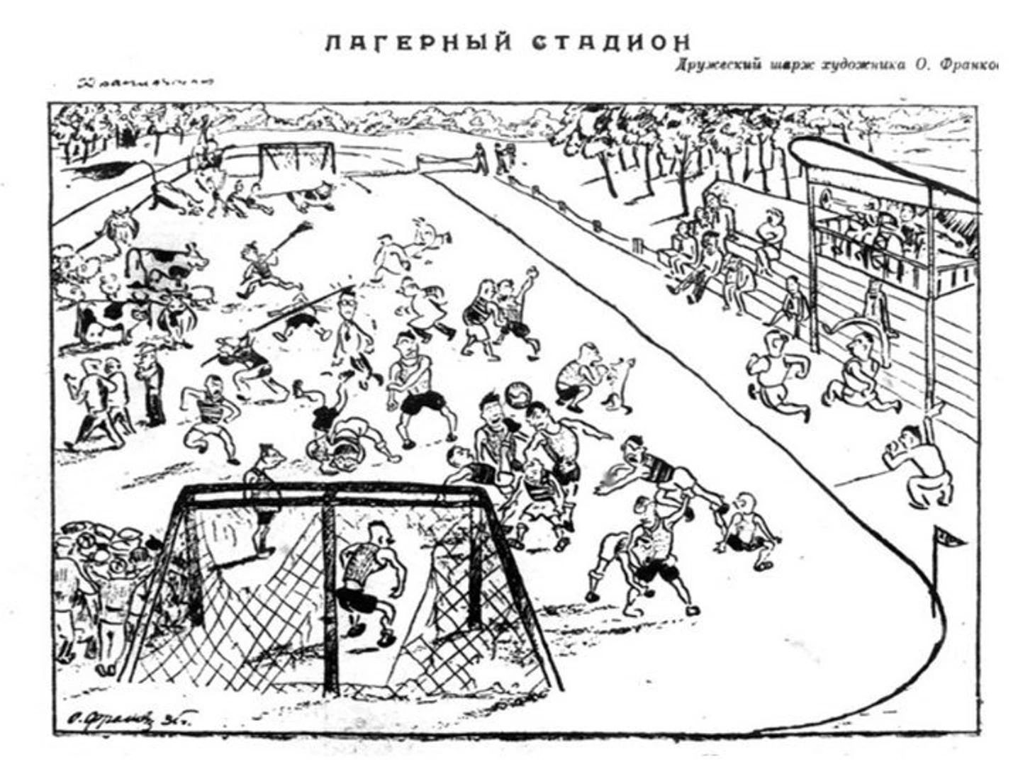 «Лагерный стадион». Шарж художника О.Франко. 1935-й