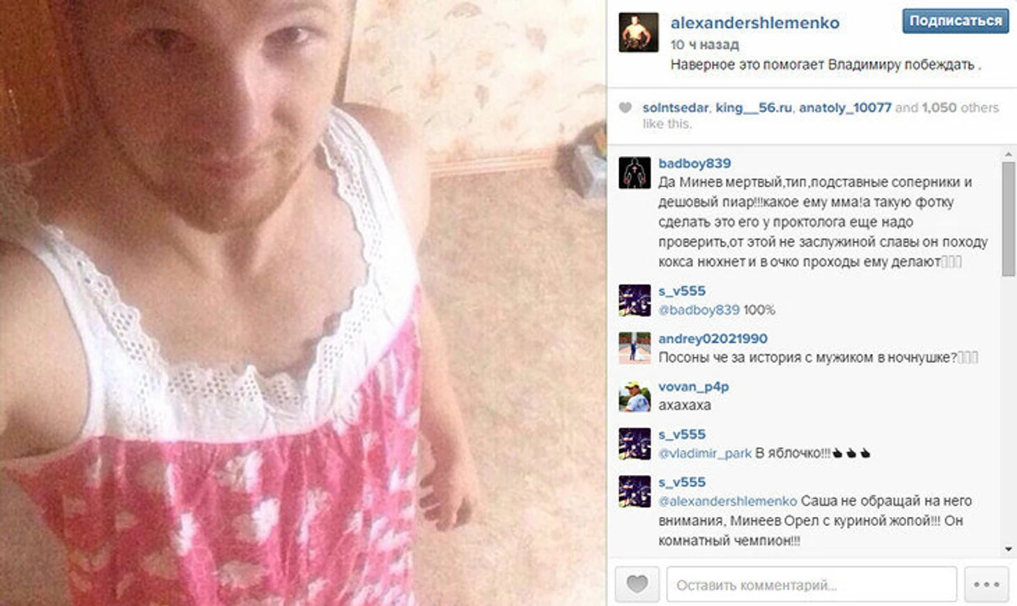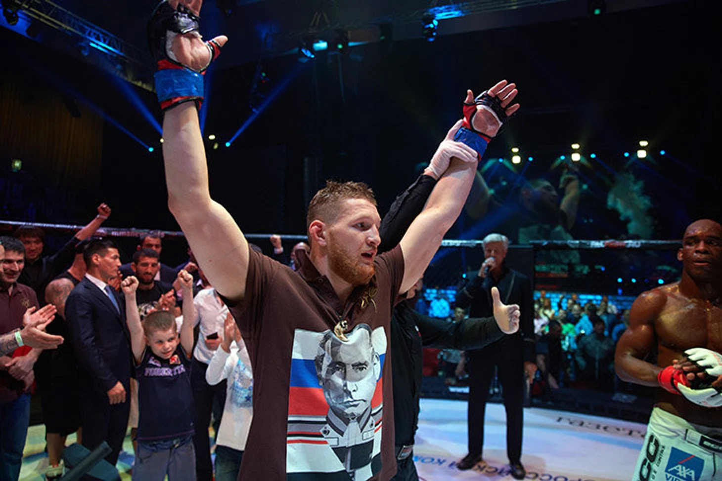 Минеев – бывший кикбоксер (чемпион мира по нескольким версиям), который перешел в ММА в 2014-м. Из десяти боев в новом виде он проиграл только один (в реванше у соперника не было шансов), но главное даже не приличная статистика, а поведение. Минеев активно продвигает трэш-ток, приходил на интервью в шубе, показывал перед боем майку с Путиным и посвящал ему победу, а тренируется в Дагестане, где на него накинулись зрители прямо во время боя.