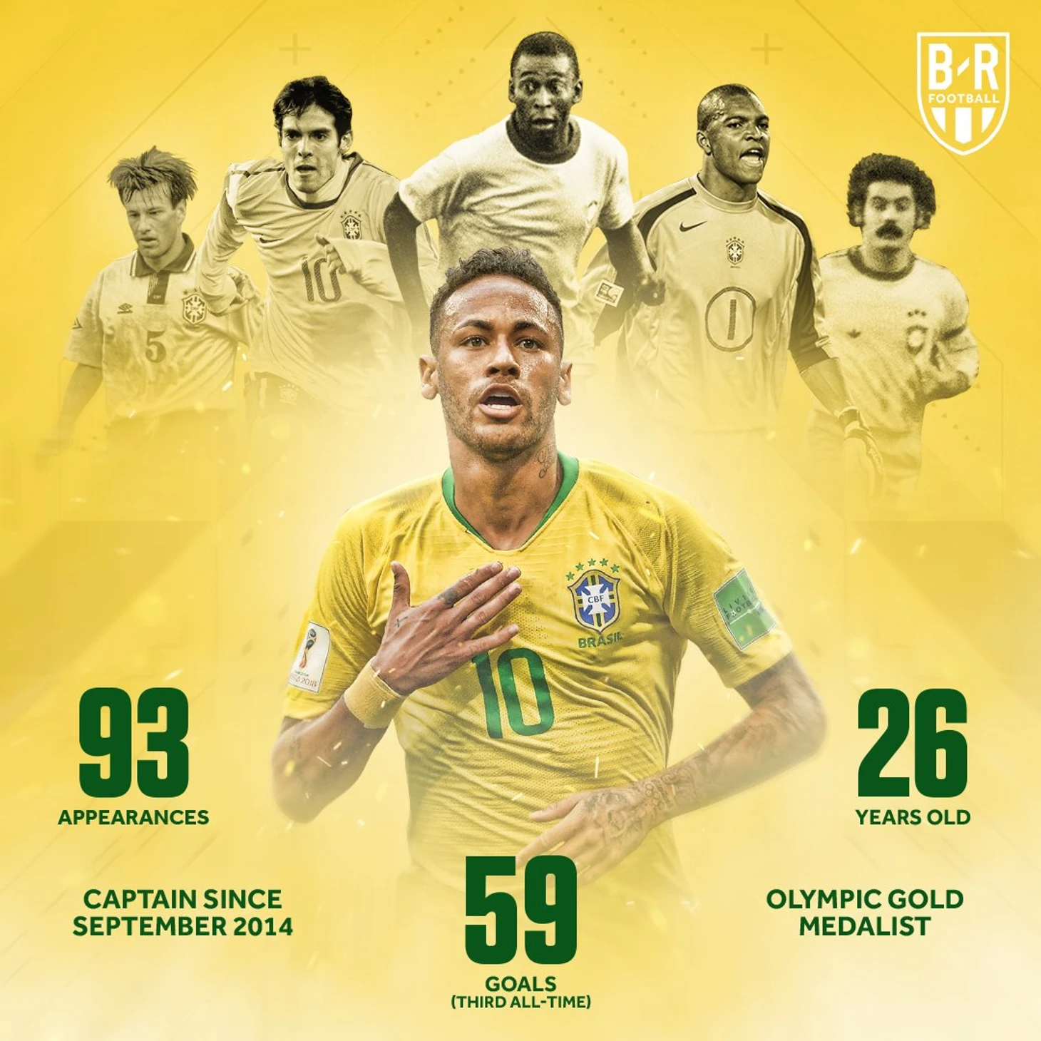 Неймар обошёл Пеле (92), Ривелино (92), Кака (92), Диду (91) и Дунгу (91).