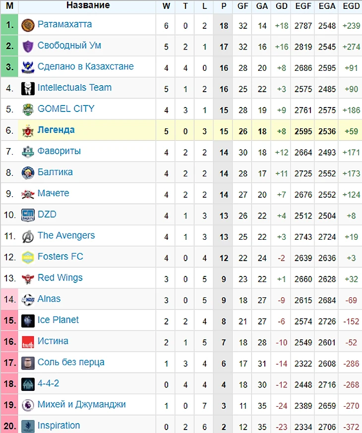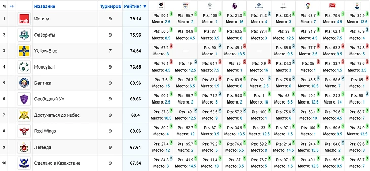 Конечно, хотелось бы быть в топ-5, но в топ-5 пока не выходит. Лично меня удивляет высокие позиции Ратамахатты,Red Army, Fosters FC и Балтики, ребята - молодцы. Ну и Moneyball, как проект, показывает свою эффективность.
