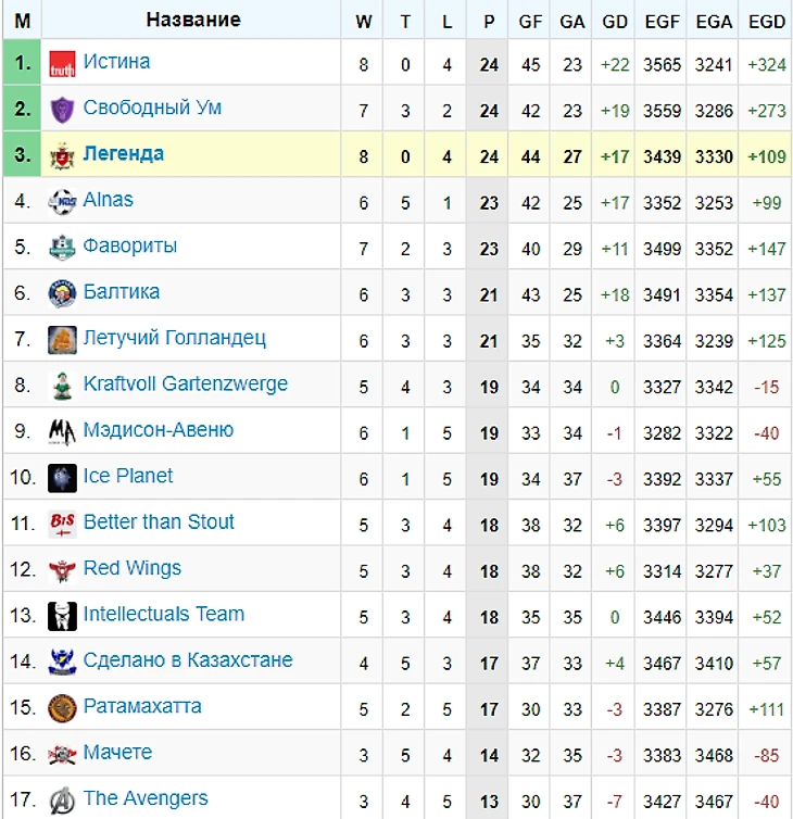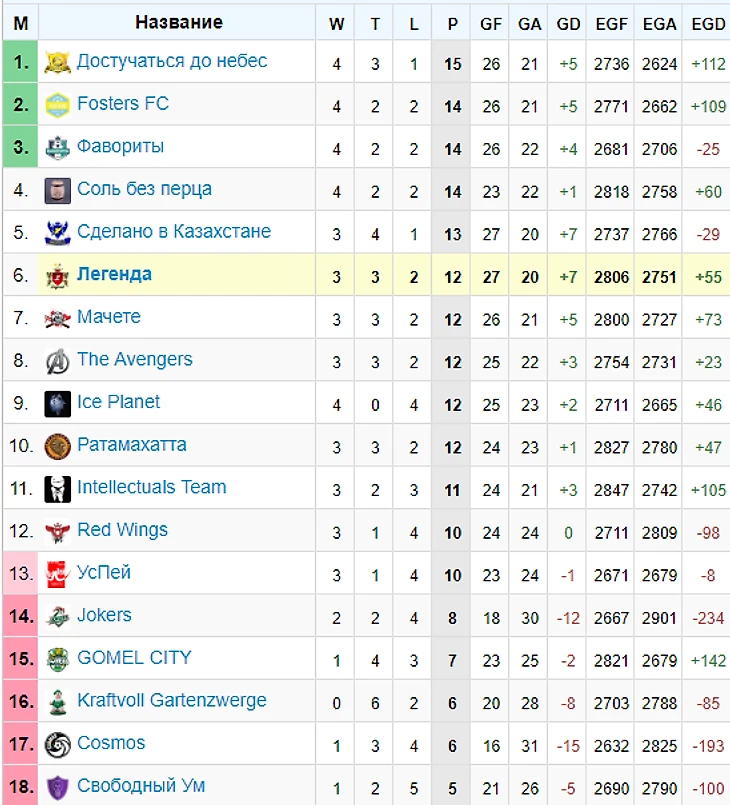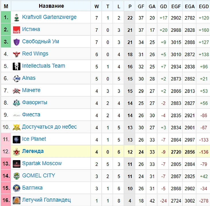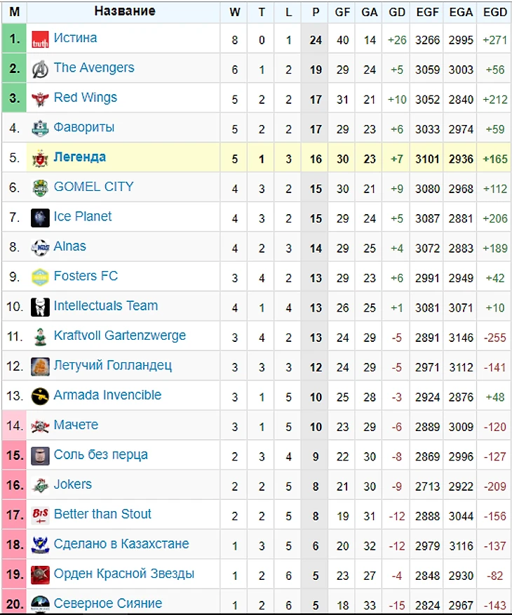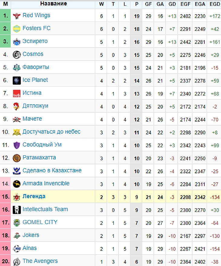 В целом, выступаем в данном чемпионате прилично. Правда, пока не научились играть с командами-лидерами, слили и Истине, и Авенгерам, и Гомелю. С другой стороны, впереди более простой календарь, а уж аутсайдерам мы пока не проигрываем! Правда, простой календарь начнется через пару туров, а пока Red Wings и Мачете - в ближайших двух турах!
