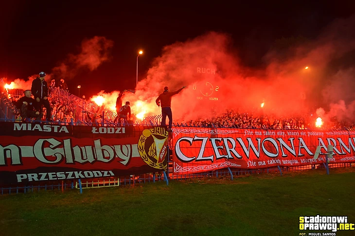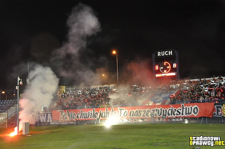 Снова отправляемся в Хожув. На этот раз тут прошел матч между двумя згодами - «Рухом» и «Видзевом». В Хожуве высадился многочисленный десант из Лодзи. Понятно, что в этот день нельзя было обойтись без пиротехники.