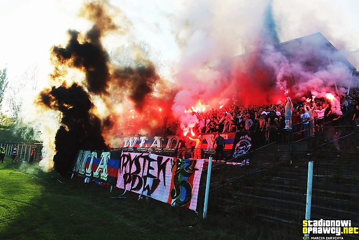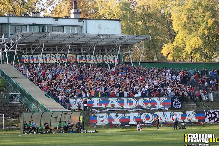 IV-ая лига, а точнее Дерби Бытома. Фанаты «Полонии» подготовили баннер «Хозяева Бытома» и пожгли пиротехнику.