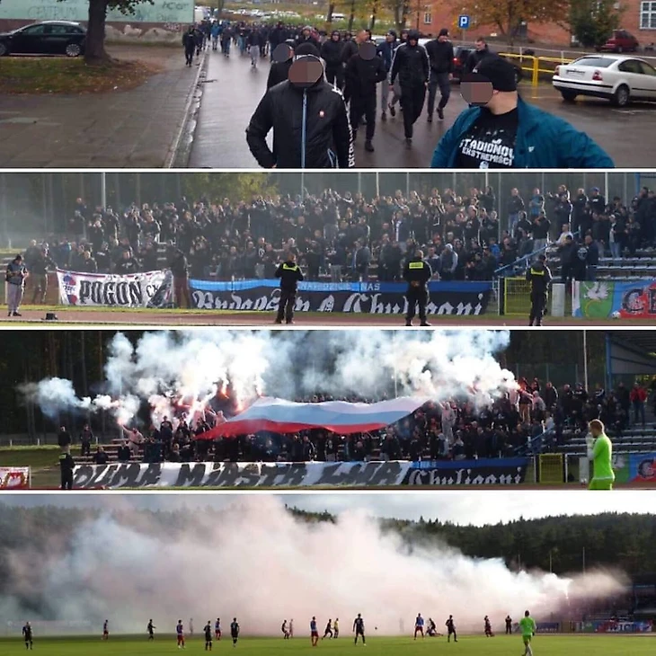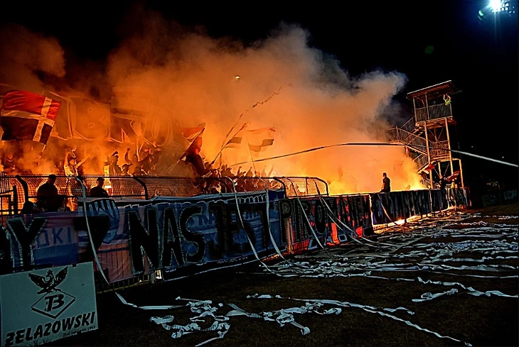 Фанаты «Хойничанки» немного пожгли на матче І-ой лиги с «ЛКСом» из Лодзи.