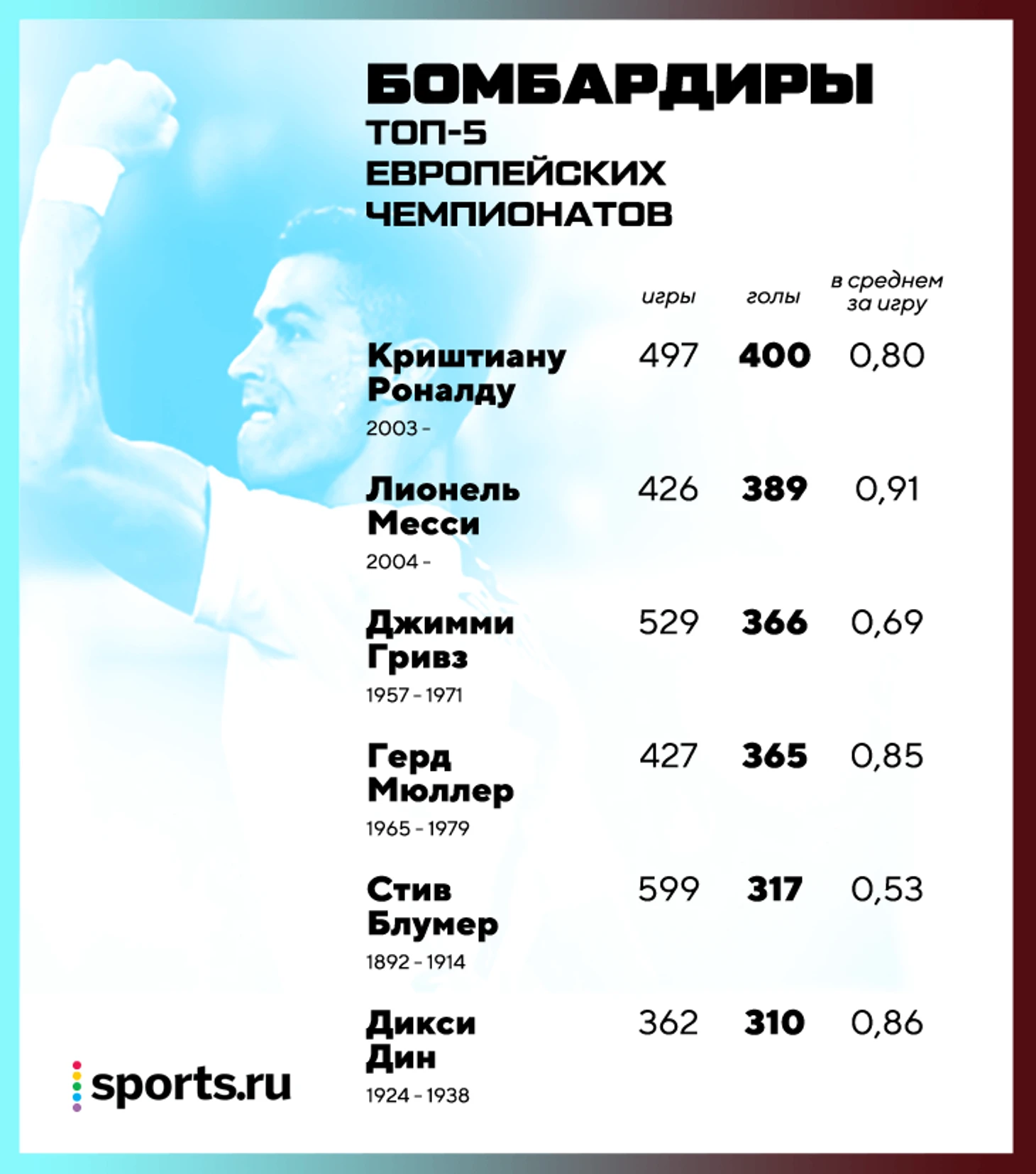 • 311 голов за «Реал»• 84 гола за «МЮ»• 5 голов за «Ювентус»