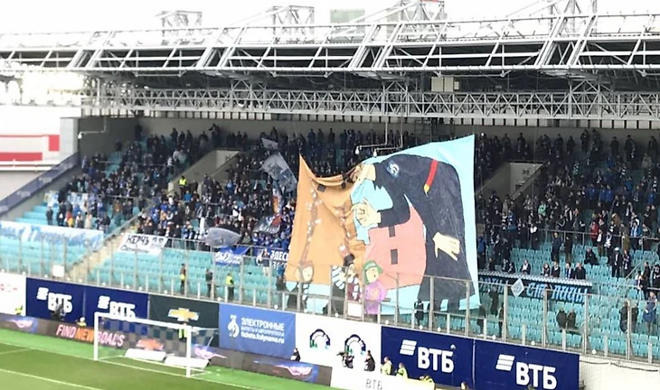 Дядя Степа грозит пальцем Кокорину и Мамаеву на баннере «Динамо»