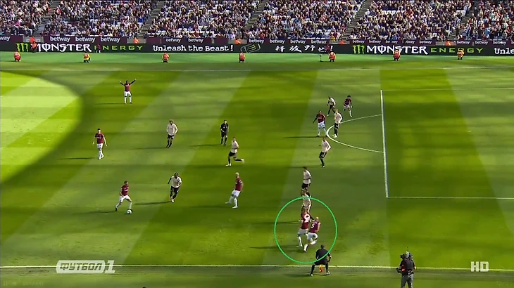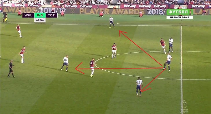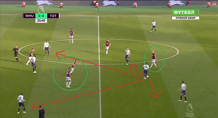 Дайер имеет сразу несколько адресатов для передачи при попытках прессинга «Вест Хэма»