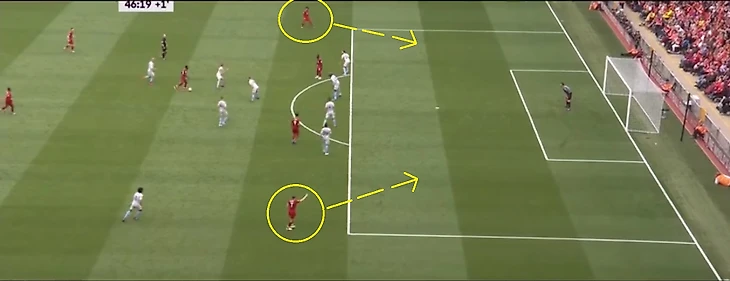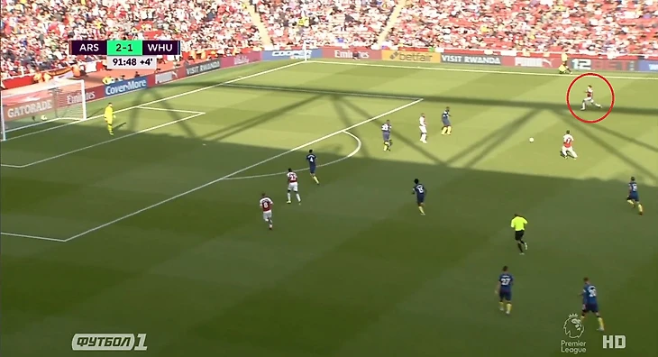 Крессуэлл не первый раз за матч не успевает вернуться и закрыть свою зону, вследствие чего Диоп смещается на флаг, дабы страховать незакрытую зону