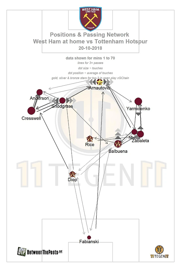 2) Отсутствие опасных моментов, создаваемых через центр. Тут немаловажную роль играет травма Мануэля Лансини, который является важным креативным звеном команды, к тому же прибывший на замену давно ушедшему Пайе Снодграсс всё никак не может закрепиться в основе команды, а в этом сезоне выходя на поле является довольно заметным «слабым звеном» команды. Ветеран команды и её капитан по совместительству Марк Нобл, хороший распасовщик, но так же заметно тормозит атаки своей команды, что выливается практически в отсутствие быстрых контратак, проходящих через центр поля.