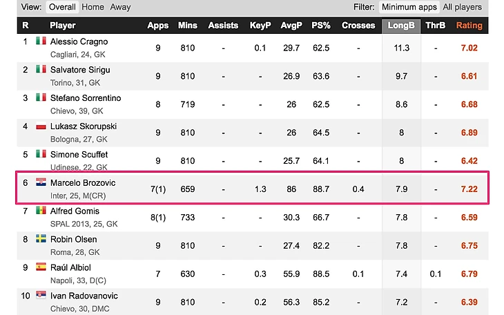 Для тех, кто регулярно следит за чемпионатом Италии, не секрет, что Марсело Брозович вышел на абсолютно новую для себя роль. Из среднестатистического бокс-ту-бокс полузащитника, он в этом сезоне начал превращаться в очень уверенного в себе разыгрывающего\регисту\якоря\глубинного плеймейкера\назовите как хотите. Немного сухой статистики: имея в среднем 86 передач за матч, Брозович является лидером Серии А по этому показателю. Находящийся на втором месте Миралем Пьянич в среднем делает 76.9 передач за матч. По сравнению с предыдущими тремя сезонами Марсело делает в среднем на 30 передач больше.