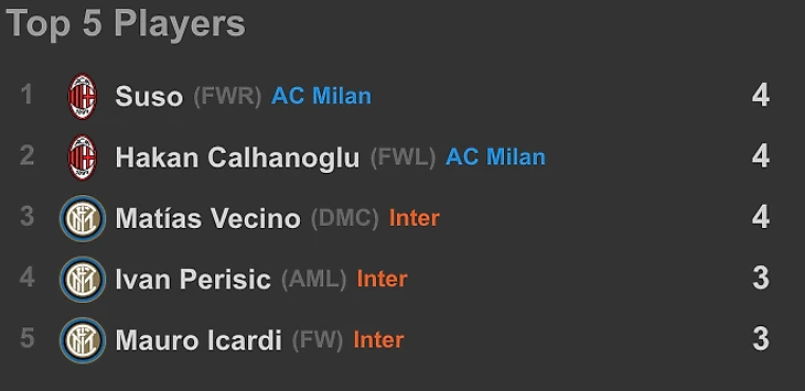 В таком сложном и тягучем матче номинальным гостям вполне могли помочь удары из-за пределов штрафной площади. И Сусо и Чалханоглу большие любители прокинуть мяч в центр и клацнуть по воротам. Из 15 ударов «Милана» 9 были из-за пределов штрафной и 3 были сразу на входе туда.