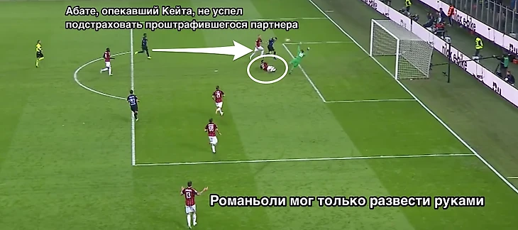 На последнем фото мы видим 2х свежих игроков которых выпустил физрук, Абате и Бакойоко. Что они делают в момент гола? Правильно ничего.