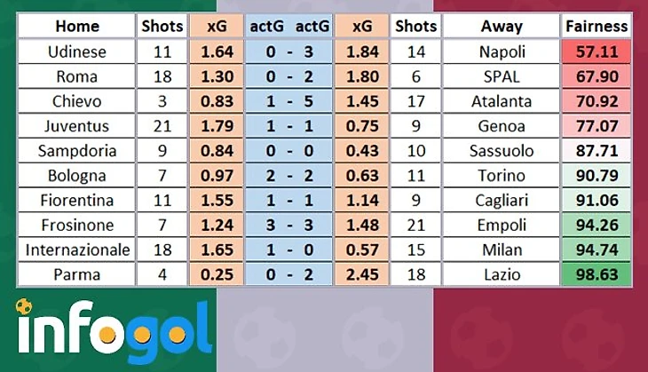 Оценка справедливости результатов 9-го тура Серии А от Infogol