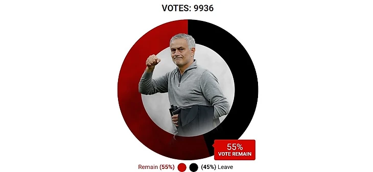Такое же голосование, как рядом со стадионом, запустили и в онлайне. Пока побеждают те, кто хочет оставить Моуринью.