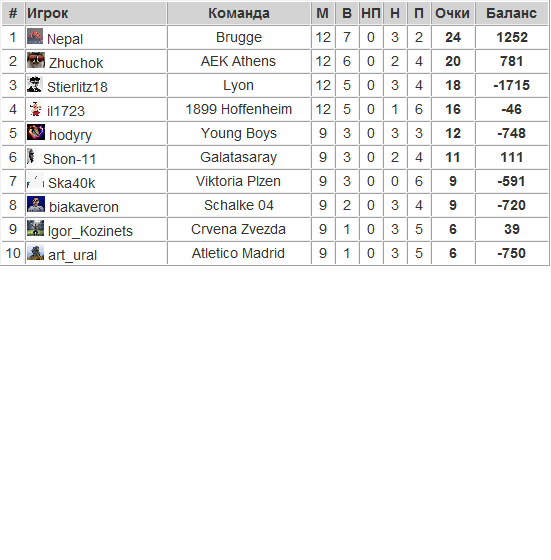 Турнир по ЛЧ. Экватор. Лидер сменился, но надолго ли?