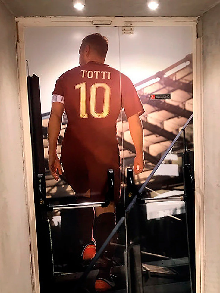 В фирменном магазине «Ромы» у колонны Марка Аврелия (построили в конце второго века после победы в Маркоманской войне) тоже полно народу. Фан-шоп не выделяется ассортиментом (все что угодно с клубным лого + богатая ретро-коллекция и формы с классическим изображением волчицы), но поражает оформлением, а точнее ожившими героями эмблемы: волчицей, Ромулом и Ремом. Каждую деталь можно потрогать на стене. И, конечно, изображения легенд – Тотти и Де Росси. Тотти есть даже на дверях запасного выхода: на поле он уже не выходит, но в Риме уверены, что в крайнем случае всегда поможет.