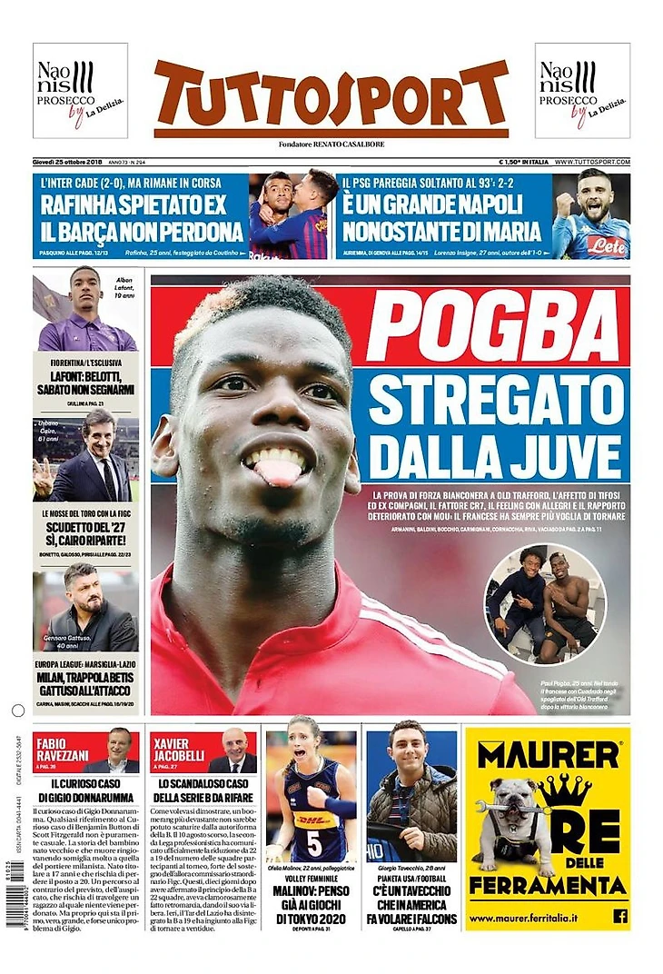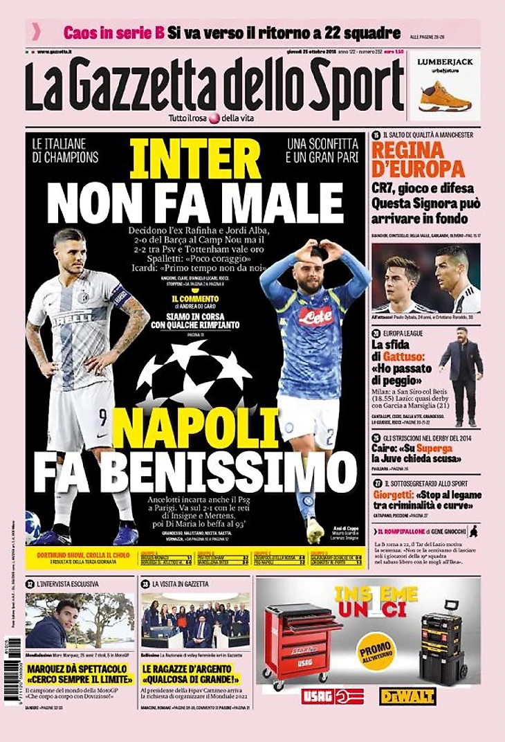 Грандиозно. Заголовки Gazzetta, TuttoSport и Corriere за 25 октября