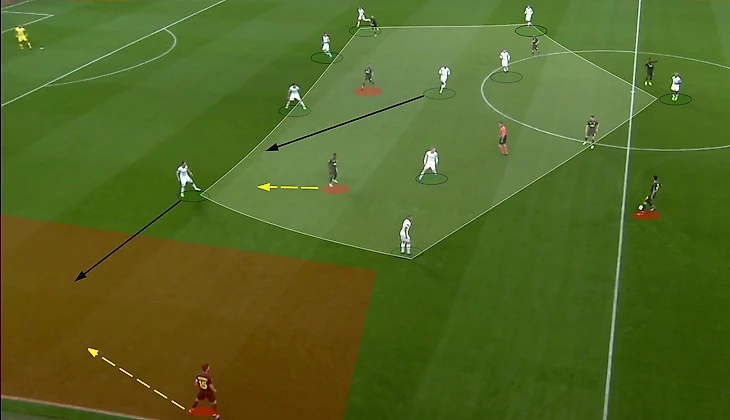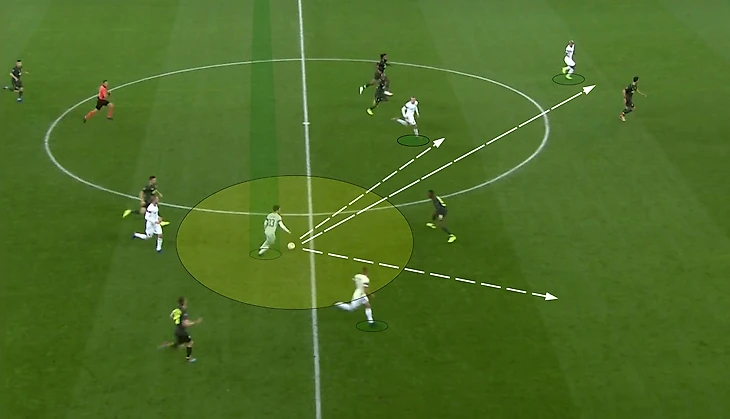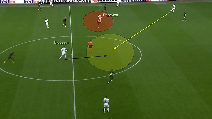 Это не единственный момент помощи Классона в билдапе. Швед регулярно опускался к защитникам через свой полуфланг, предлагал опцию для промежуточного паса, связывал между собой линии.