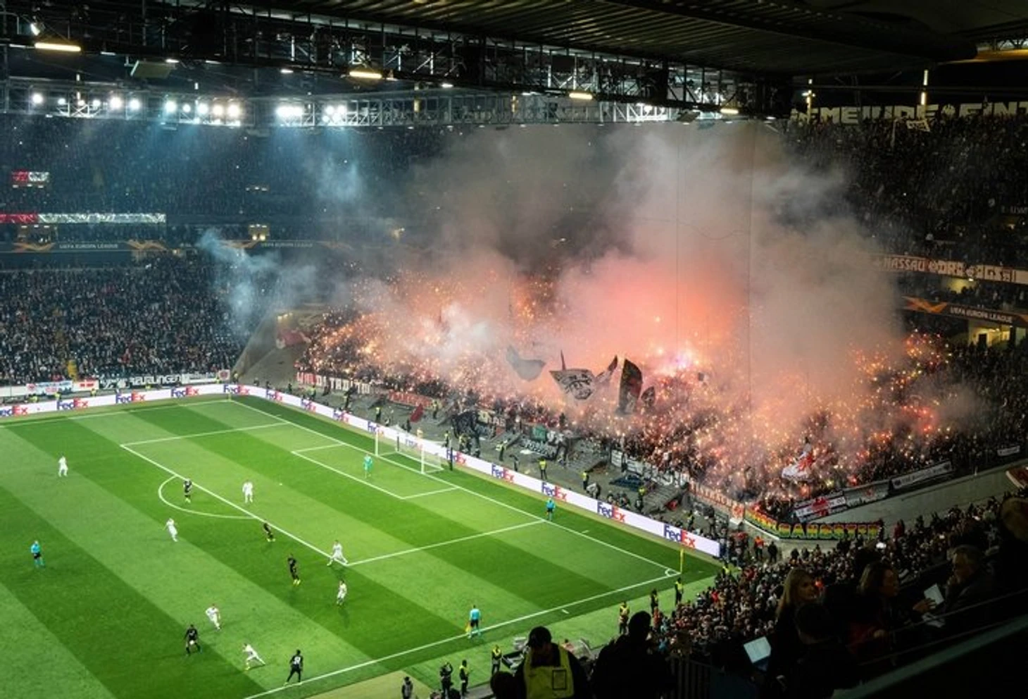 Команда из Франкфурта провела свой второй домашний матч в еврокубках за последние пять лет. На игре против кипрского «Аполлона» болельщики устроили такой перфоманс, словно это финал турнира.