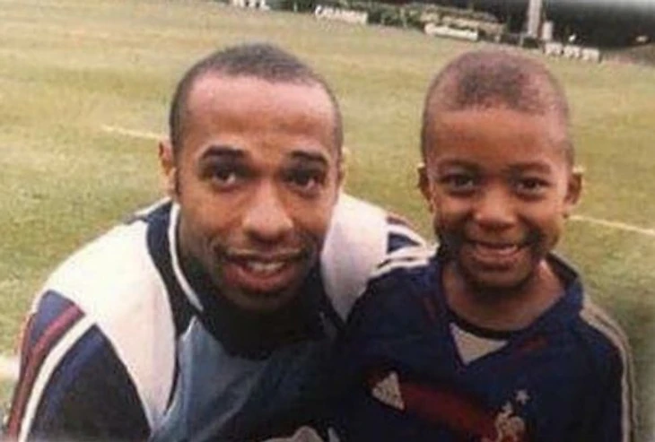 • 9-летний Килиан Мбаппе фотографировался с новичком «Барселоны» Тьерри Анри.