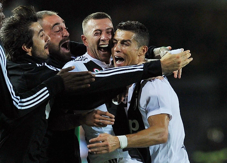 • Ультрас «Ювентуса» приехали в Эмполи, но устроили протест – молча наблюдали за игрой. Но на 70-й минуте не выдержали – не отпраздновать шикарный гол Криштиану Роналду не получилось. Португалец две недели подряд спасает «Юве» от первого поражения в сезоне. Он забил единственный гол «Дженоа» (1:1) и дублем ответил на гол капитана «Эмполи» Франческо Капуто (2:1). В последних семи матчах серии А у Роналду семь голов и три ассиста, а «Юве» повторил лучший старт в истории команды – 28 очков за 10 туров. «Есть красивые матчи, а есть те, в которых просто нужно побеждать. Сегодня был как раз второй вариант», – прокомментировал Массимилиано Аллегри игру команды, для которой встреча с «Эмполи» получилась сложнее, чем с «МЮ».