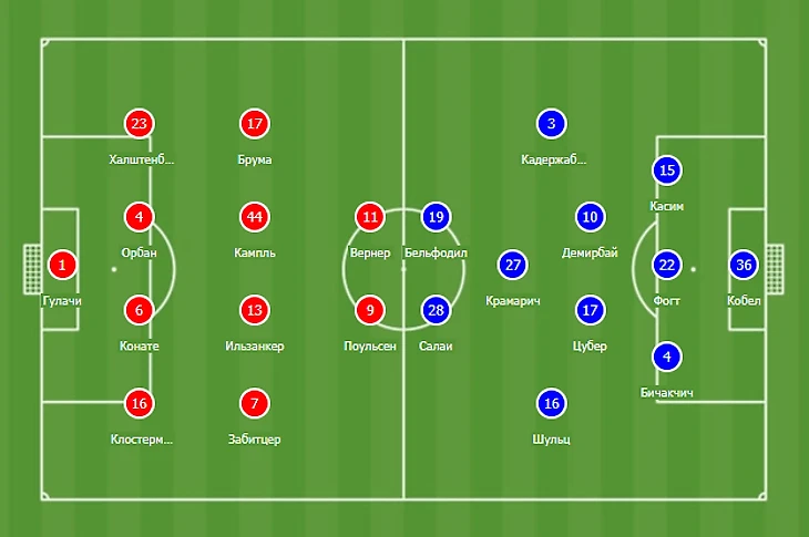 Проблем с составом у команд хватает. Хозяева не смогут рассчитывать на двух исполнителей: защитник Марсело Саракки из-за дисквалификации и нападающий Эмиль Форсберг, все еще не восстановившийся. У гостей по-прежнему не будет Беньямина Хюбнера, Надима Амири, Денниса Гайгера и Лукаса Руппа. Также несмотря на то, что тесты не выявили серьезной травмы у Флориана Гриллича после игры прошлого тура, но игроку необходим перерыв.