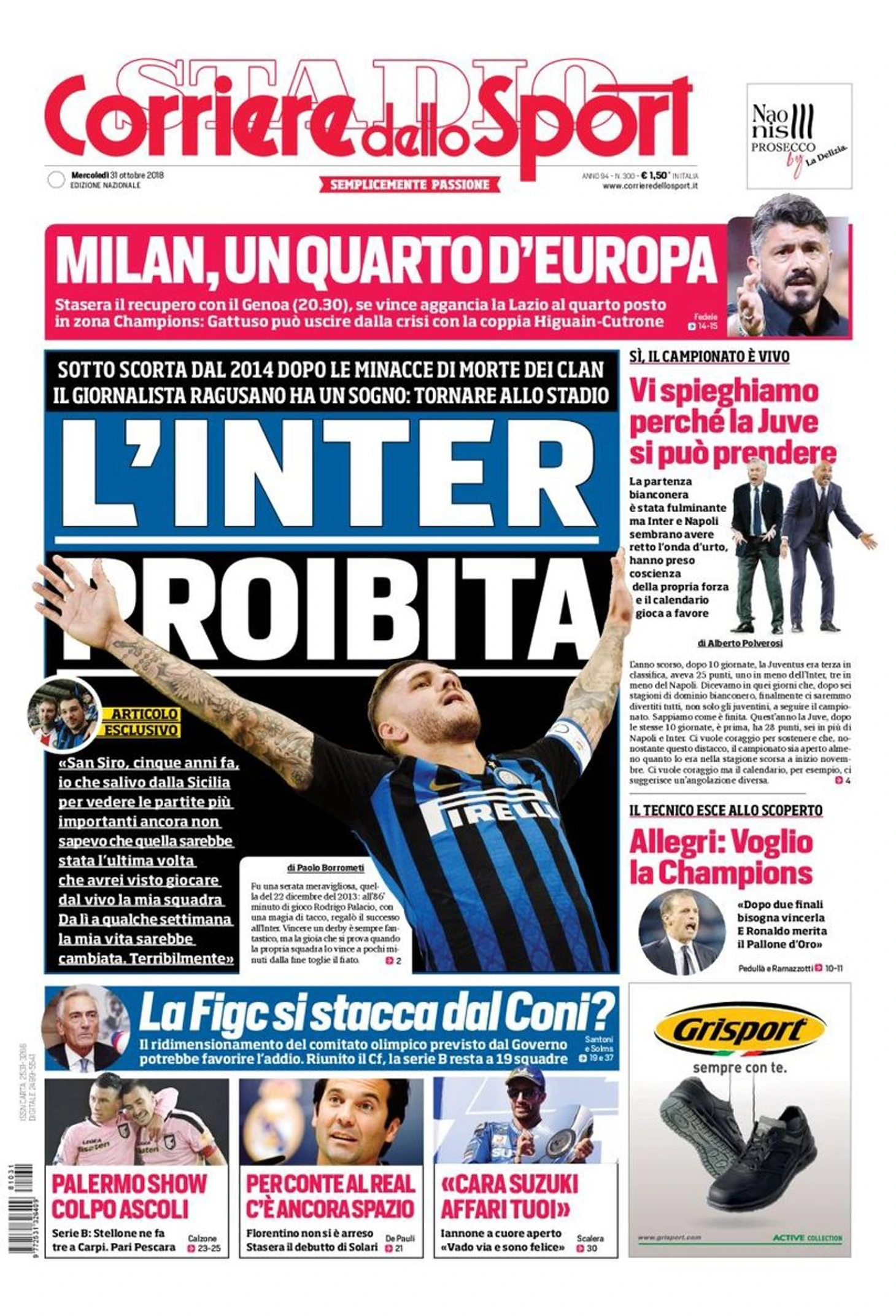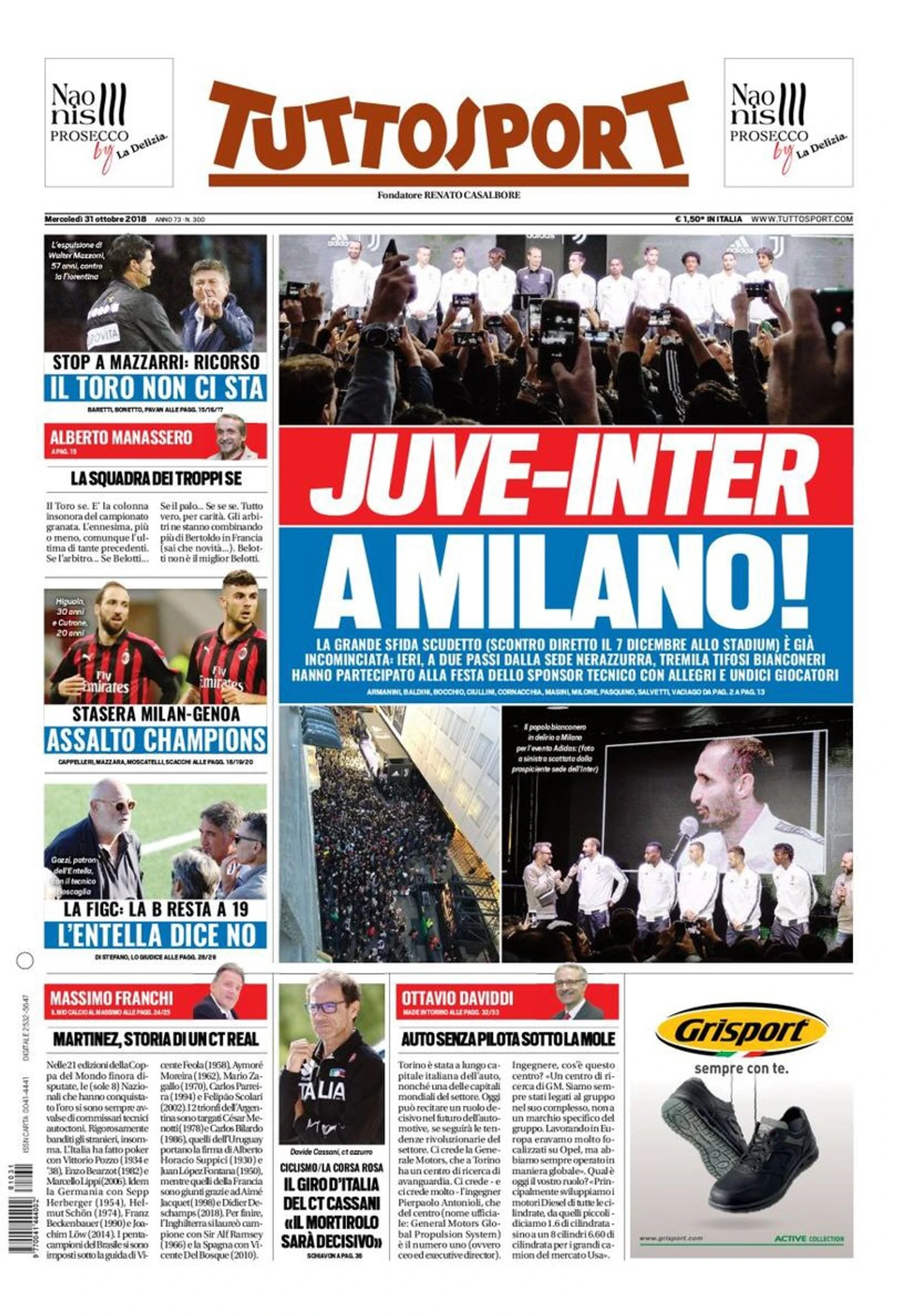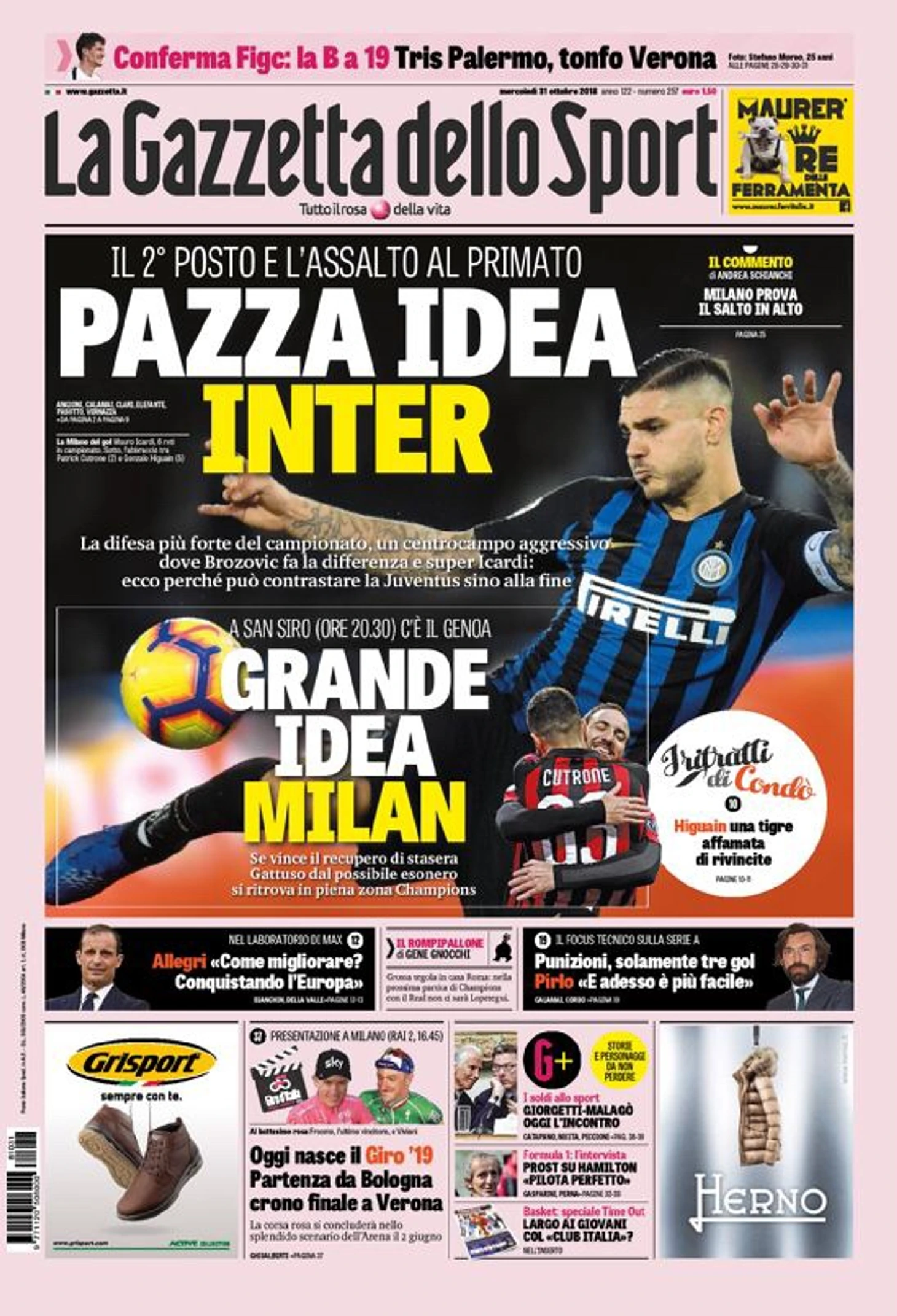 Сумасшедшая идея «Интера». Заголовки Gazzetta, TuttoSport и Corriere за 31 октября