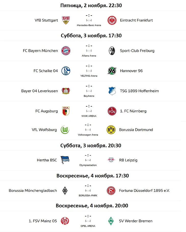 Превью 10-го тура немецкой Бундеслиги