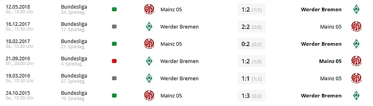 "Вердер" уступил только в одном из восьми предыдущих матчей против "Майнца" (в сентябре 2016)