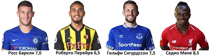 Полузащита. Великолепную форму набрал Росс Баркли 7,0, на счету англичанина 3 гола и 3 ассиста в трёх последних встречах, на фоне Эдена Азара, восстанавливающегося после травмы, вариант отличный. Не сильно уступает ему Гильфи Сигурдссон 7,5, забивший 5 голов в 6 последних матчах ирисок, конкурент исландца Ришарлисон 7,5, пока только набирает форму - бразилец заработал пенальти на Олд Траффорд и забил Шмейхелю, его главное преимущество в позиции на поле, он играет единственного нападающего в команде Рафы Силвы. Антони Марсьяль 7,5 исполняет обязанности Лукаку в последних матчах и уже наколотил 4 гола в трёх поединках, а если бы Погба надежней исполнял пенальти, имел бы ещё и ассист. В составе Манчестер Сити хороши сразу несколько игроков, но в основе они выходят не так стабильно, как хотелось бы, а учитывая предстоящие матчи ЛЧ, скорее всего снова будут сюрпризы. Тем не менее выделяется Рахим Стерлинг 9,0, принесший 6 голов команде своими действиями в последних шести играх.