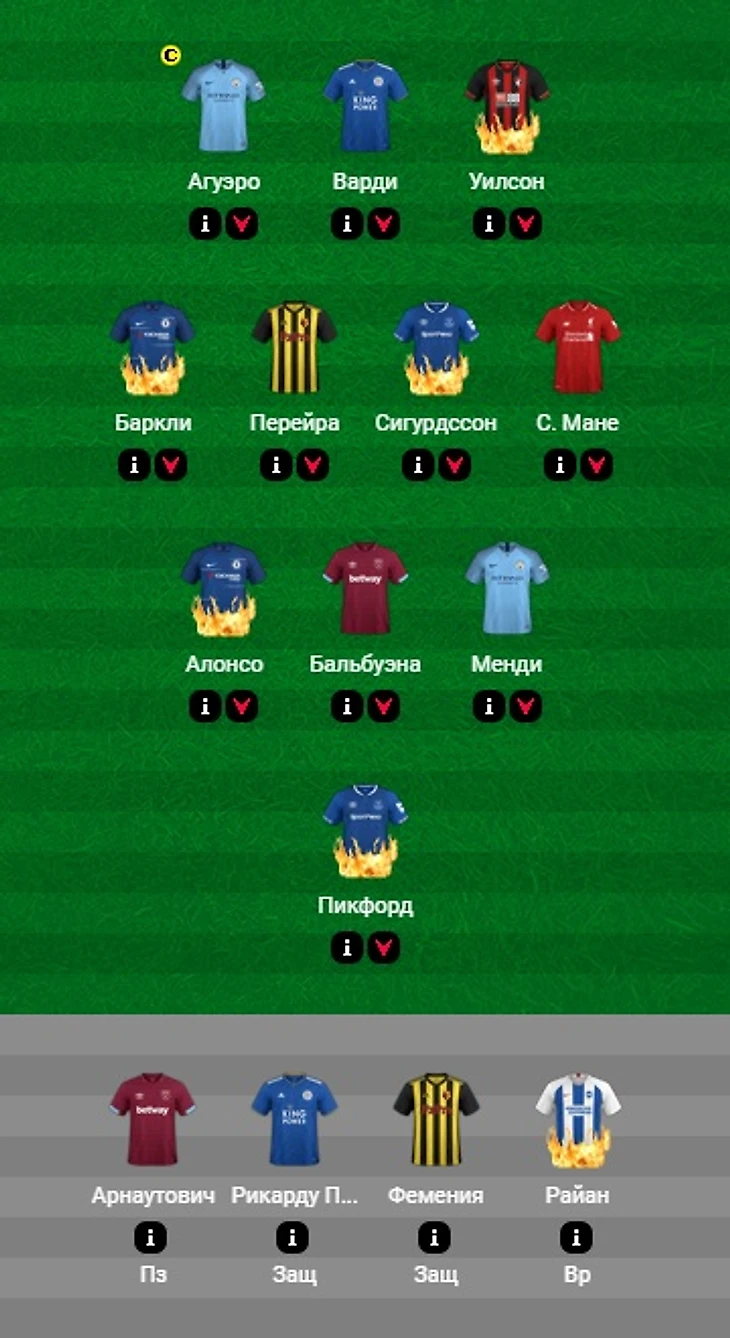 Нападение. Ну куда же без Серхио Агуэро 9,0, аргентинец отличался в каждом домашнем матче, нет причин не брать его и на этот. У Каллума Уилсона 7,0 история схожая с Арнаутовичем, англичанин отличается всегда, когда это делает команда, таким образом на его счету 12 результативных действий за 10 туров, и где-то закрадывается мысль, что его стоило взять с самого начала и не менять. В последних 3 турах разыгрался Пьер-Эмерик Обмаеянг 8,5, габонец забил целых 5 раз и один раз помог пратнеру, противостоять ему будет Ливерпуль, но учитывая результативность их очных встреч, вариант вполне играбельный. Альваро Мората 8,0 снова в старте и забивает (2 гола за 176 минут), однако в стане Маурицио Сарри результативней игроки в других амплуа.