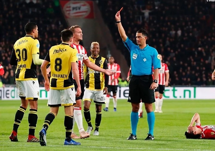 Встречу с ПСВ подопечные Леонида Слуцкого начали очень агрессивно, "орлы" бежали вперёд и старались создавать моменты, но не хватало исполнения в завершающей стадии. Всю картину сломала прямая красная карточка Данильо Духи, который не успел за Ирвингом Лосано и срубил убегавшего на рандеву с Эдуарду мексиканца. Это удаление стало для "Витесса" уже четвёртым в сезоне, тренерскому штабу нужно работать над дисциплиной в команде.