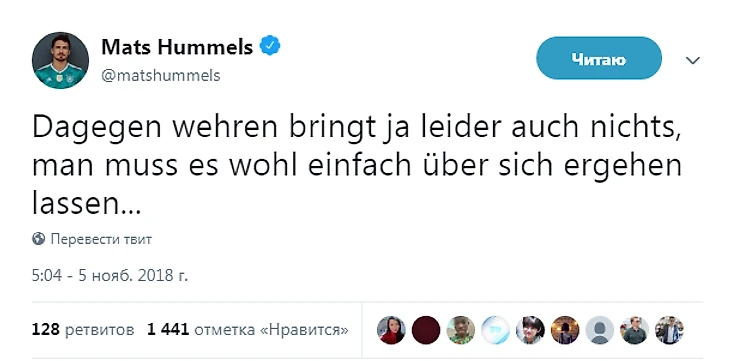 Матс Хуммельс известен своей общительностью в твиттере, и недавно он опубликовал вот такой загадочный твит: «К сожалению, борьба не всегда приносит результат, порой вам нужно просто это отпустить.»