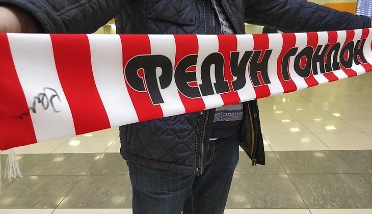 Расписался даже на шарфе с надписью «Федун – гондон» – таких в Шереметьево было много.