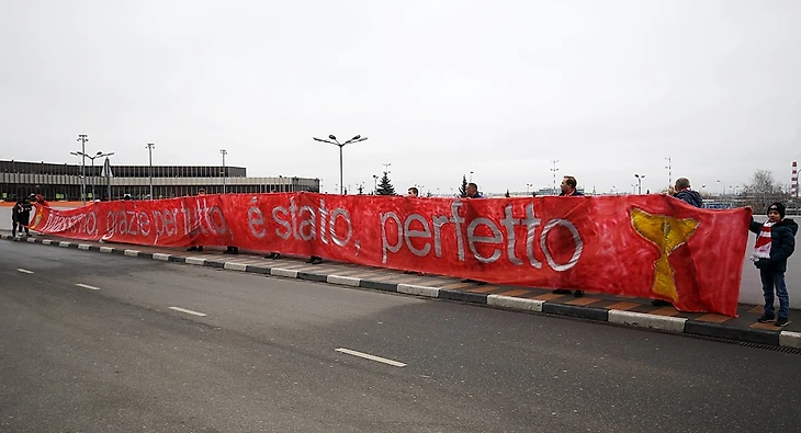 Болельщики собрались в Шереметьево примерно за час до приезда Массимо, поэтому, когда машина итальянца подъехала к терминалу, уже были готовы и подарки, и баннер, и камеры настроены на селфи-режим.