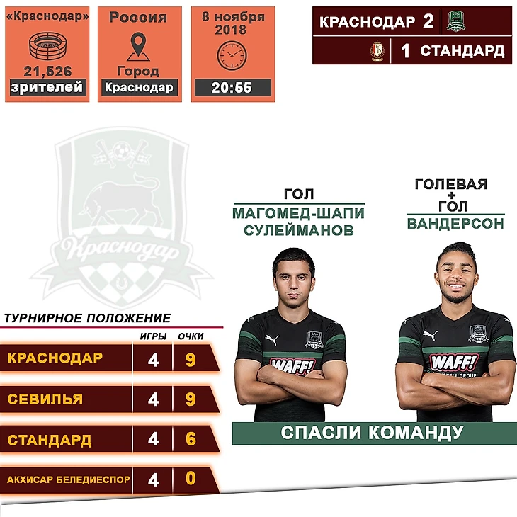 Краснодарский камбэк.У «Краснодара» не было перед матчем никаких потасовок, они не жгли файеры и их никто не разгромил. Но нервишки болельщикам всё-таки игроки потрепали. Команда уступала в счёте до 80-й минуты, а вот после наступил всеобщий праздник.