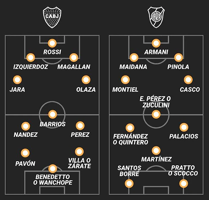 «Ривер» при Гальярдо имеет две основные схемы: 4-2-2-2 и ещё модификация в виде 4-4-2 с ромбом в центре. У «миллионеров» также шикарный выбор атакующих игроков, а также очень мощные и опытные игроки обороны. Самое большое внимание уделяется 10-му номеру Мартинесу, но в распоряжении Гальярдо также есть талантливый 20-летний Паласиос, а также колумбиец Кинтеро. В опорной зоне капитана Понсио заменит кто-то из пары Перес/Сукулини, хотя возможен вариант, при котором они появятся на поле вместе. В атаке тренерский штаб будет выбирать между опытными Скокко и Пратто, а также молодым колумбийцев Борре.
