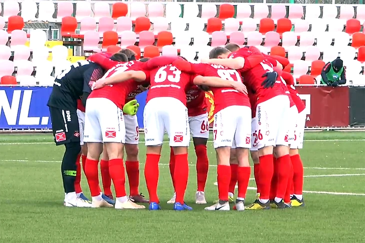Красно-белые обыграли гостей из Новосибирска в матче 22-го тура ОЛИМП — Первенства России по футболу.