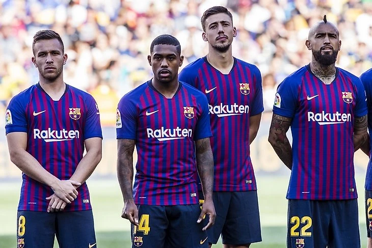 В этом сезоне «Барселона» играет в комплекте с вертикальными полосками и логотипом японской компании Rakuten, занимающейся электронной коммерцией (по контракту клуб получает 58 млн долларов в сезон)