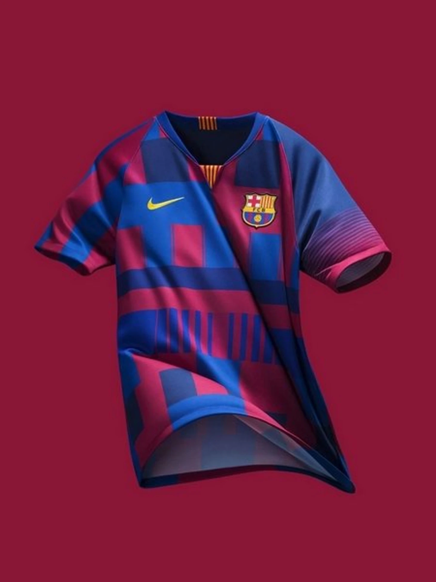 На этой футболке есть элементы из всех домашних комплектов форм, который Nike делал для «Барселоны» в течение этих 20 лет.