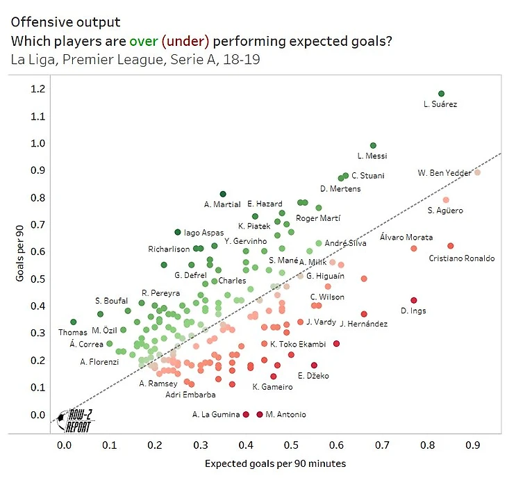 Овер(андер)перформинг игроков из АПЛ, Серии А и Ла Лиги