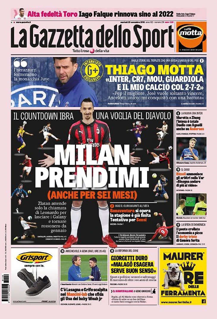 «Милан», возьми меня. Заголовки Gazzetta, TuttoSport и Corriere за 20 ноября