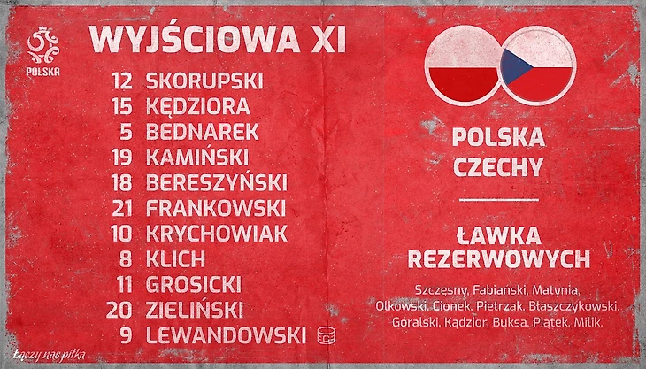 Выбор основного состава несильно удивил, учитывая статус игры. Последний пост доверили Скорупскому, из-за травмы Рыбуса на левый фланг обороны пришлось сместиться Берешиньскому, на профильной позиции которого вышел представитель киевского «Динамо» Кендзёра. В полузащите на один из флангов вышел представитель «Ягеллонии» Пшемыслав Франковски, получивший наконец свой шанс в сборной.