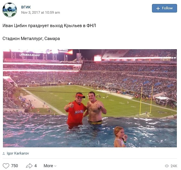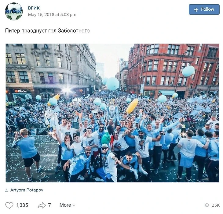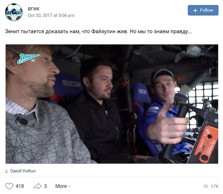 Пара инициативных ребят после этого основали паблик «Веселый Губерниев и компания» – название появилось как раз после того матча. Паблик сразу позиционировался как острый, со спортивной сатирой. Сначала во «ВГИКе» были мемы: про Губерниева, Бердыева, Сычева, Карпина и других. Потом, в 2012-2013 годах, перешли от мемов к шуткам про футболистов, тренеров и других. Но каких-то масштабных, постоянных тем еще не было. Потом случился рекорд Акинфеева. Потом стали популяризировать ФНЛ как лучшую лигу мира. А, и мем про Файзулина примерно в это время появился. Вот эти три большие темы, с которых все пошло. Плюс были какие-то другие трендовые шутки, конечно: и на грани, и более-менее сглаженные. Иногда что-то нецензурное, но это «ВГИК», такой паблик.