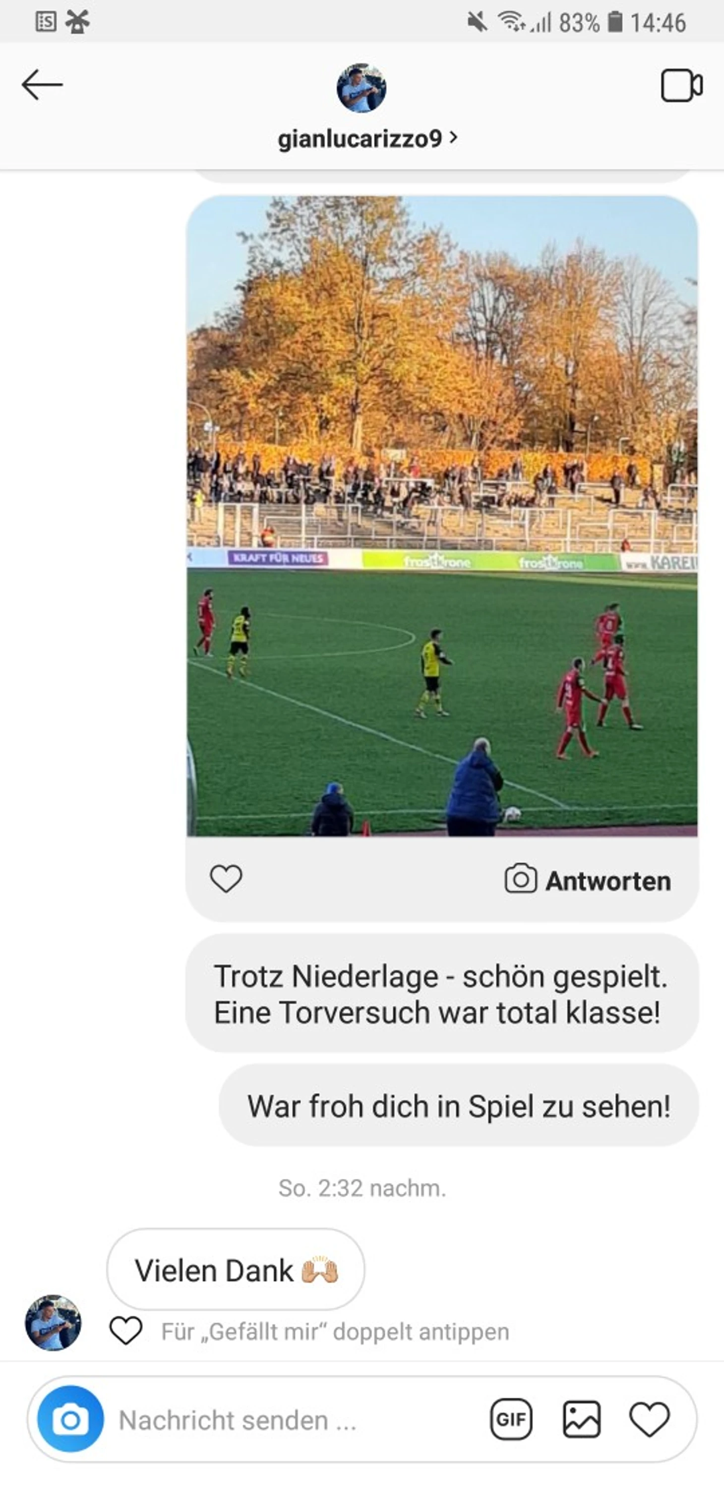 Кстати, я не оставила так же Риццо без похвалы, написав ему в дикерте Instagram и скинув фото с матча.
