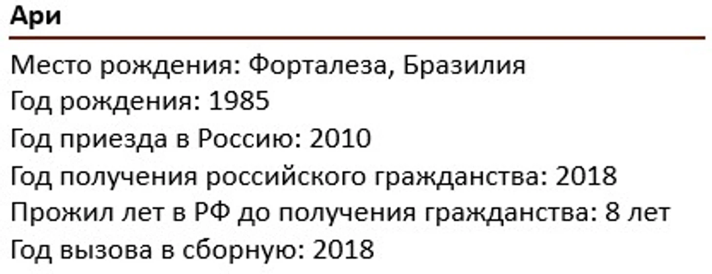 P.S. Сейчас мир становится все более и более глобальным. И нельзя судить о том, кто «русский», а кто нет только лишь по «праву крови» или «земли». В современном мире так просто невозможно. Сейчас, для того чтобы стать русским, французом, американцем или кем‑то еще существует определенный механизм и, пройдя его, человек и становится тем, кем он хочет быть. И если Ари, Гильерме, Фернандес, Рауш или Нойштедтер прошли этот процесс, то они русские, а стало быть могут выступать за сборную России.
