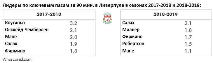 В первой половине прошлого сезона этим занимался Коутиньо, а во второй – Окслейд-Чемберлен. Они же, наряду с Мане были главными плеймейкерами прошлогоднего «Ливерпуля». После ухода Коутиньо и травмы Окслейда-Чемберлена в «Ливерпуле» нет игрока, который мог бы эффективно связывать центр поля и нападение. Итог: они отрезаны друг от друга.