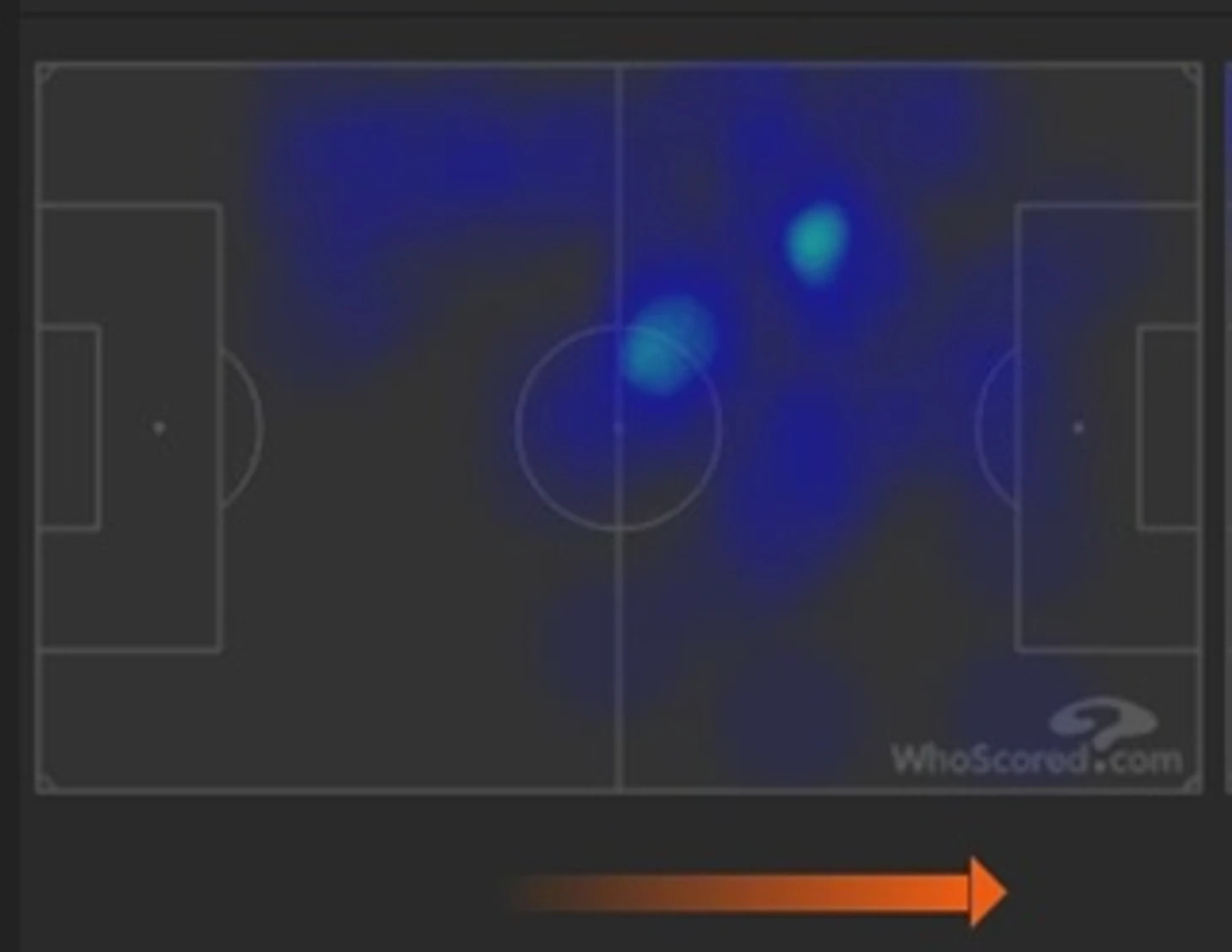 Тепловая карта Садио Мане в матчах с «Уотфордом» и «Юнайтед» в сезоне 2017/18.