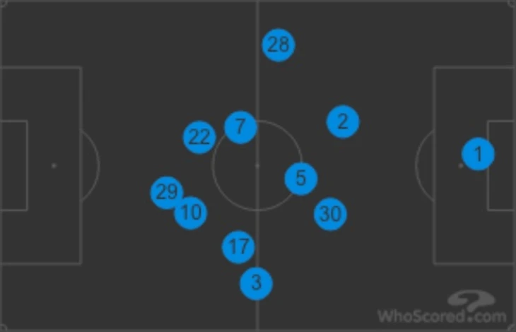Все привыкли к тому, что «Челси» - одни из лучших по передачам в зоне «3\4», куда с флангов сбегаются Азар и Виллиан и разрывают центр обороны соперника. Карта усредненных позиций «Челси» в этом матче говорит нам о том же.